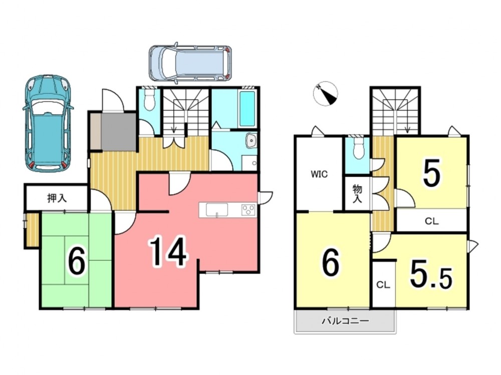 ウォークインクローゼット付き 車2台駐車可能です♪