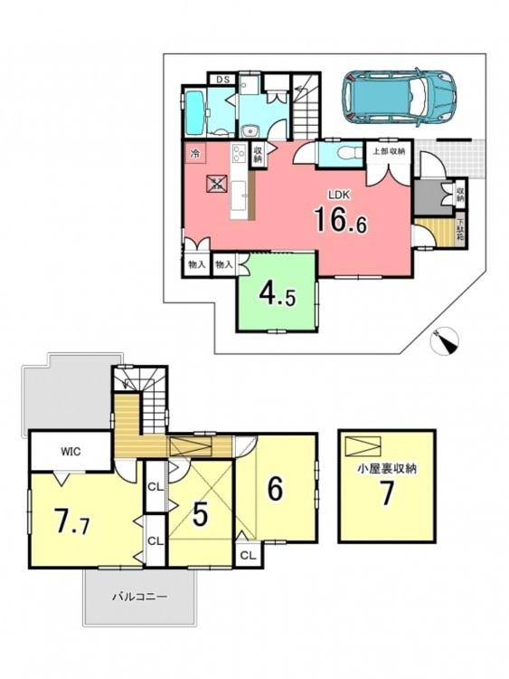 - BS、CS、床暖房、システムキッチン、カウンターキッチン、食器洗浄乾燥機、シャンプードレッサー、浴室乾燥機、洗浄便座、ウォークインクローゼット、グルニエ(屋根裏部屋)、追い焚き、駐車場2台分、床下収納、ガスキッチン,冷房,暖房,エアコン,
