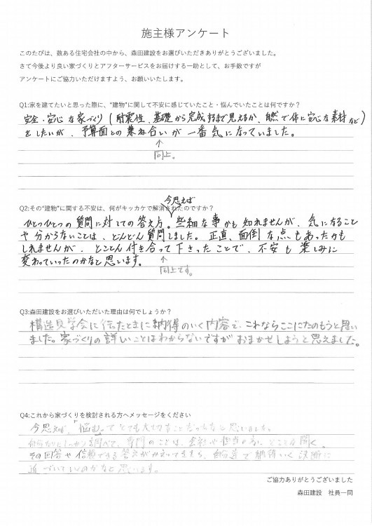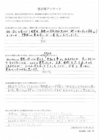 このたびは数ある住宅会社の中から森田建設をお選びいただき、そして大切な家づくりをお任せいただき本当にありがとうございました。